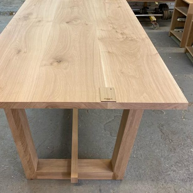 Bring expert craftsmanship and modern design into your dining room with our English Oak Trapezium Leg dining table.