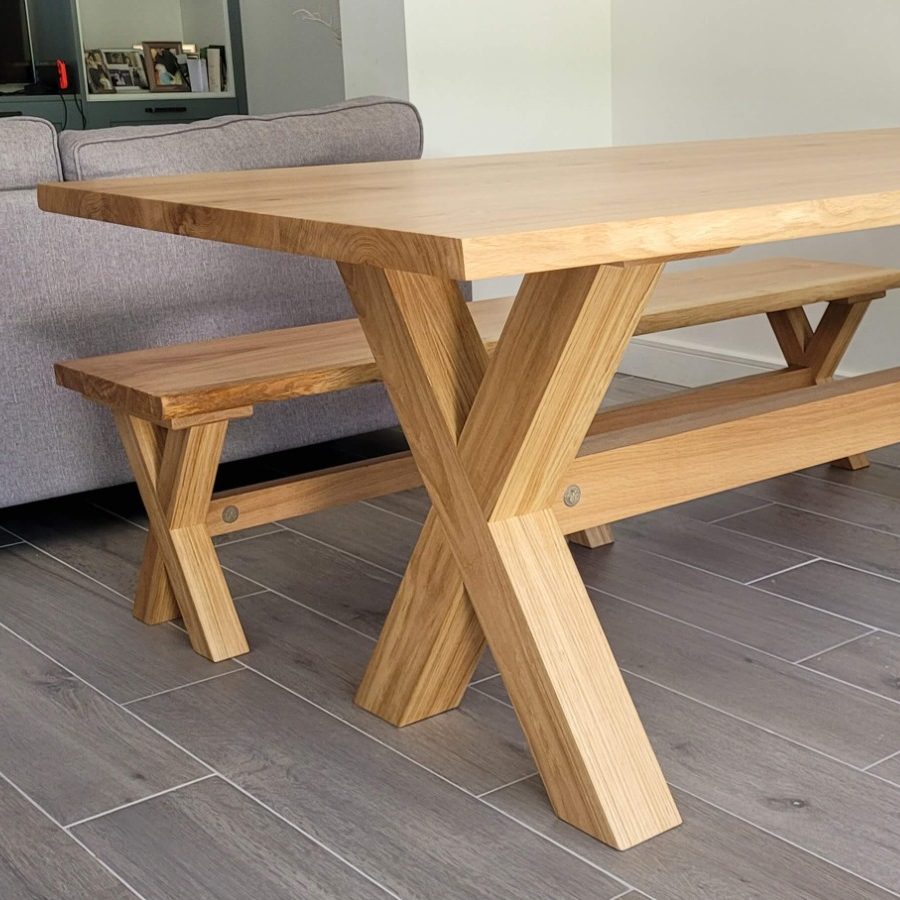 Bring expert craftsmanship and modern design into your dining room with our English Oak X Leg dining table.